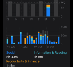 Not only does it tell you how much time, it also tells you where you spent the time. Categories are; social, information or reading, productivity and finance, entertainment, travel, and other (there may be more). It tells you how much time you’ve spent, and where you spent it. It then details how much time you spent on specific apps like Gmail, Facebook, LinkedIn, Messages and so on.