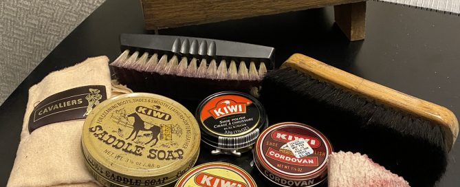 One Christmas I received an Executive Valet Shine Kit (shoe shine box) as a present. It had all the accoutrements; Kiwi Wax, brushes, cloths, creams, buffers, liquid black, everything I needed to give a great shine. Every couple of weeks, I’d line up all my shoes and give them all a good spit polish.